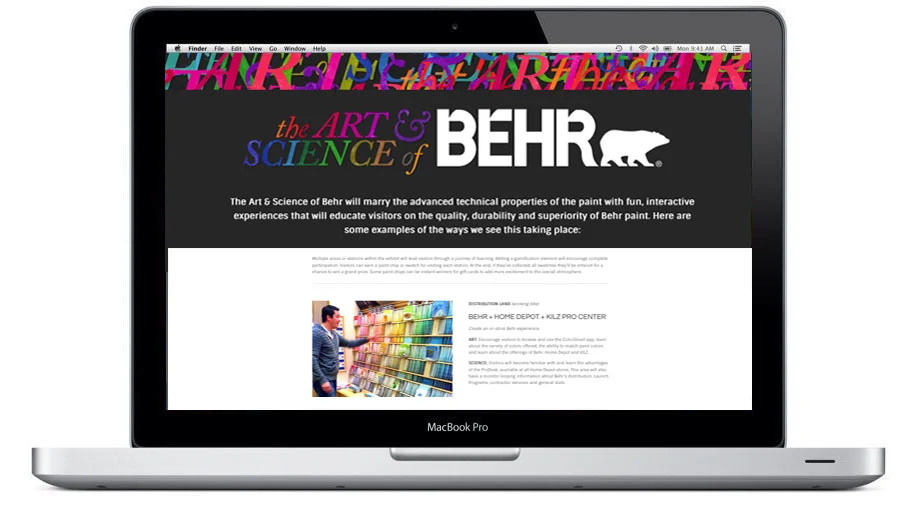 Together with the Custom Exhibit team, we created the concept of five distinct hands-on and demo areas within a 50’x50’ booth, then took these ideas and developed a full presentation that included The Art & Science of Behr theme graphics - and Behr loved it!